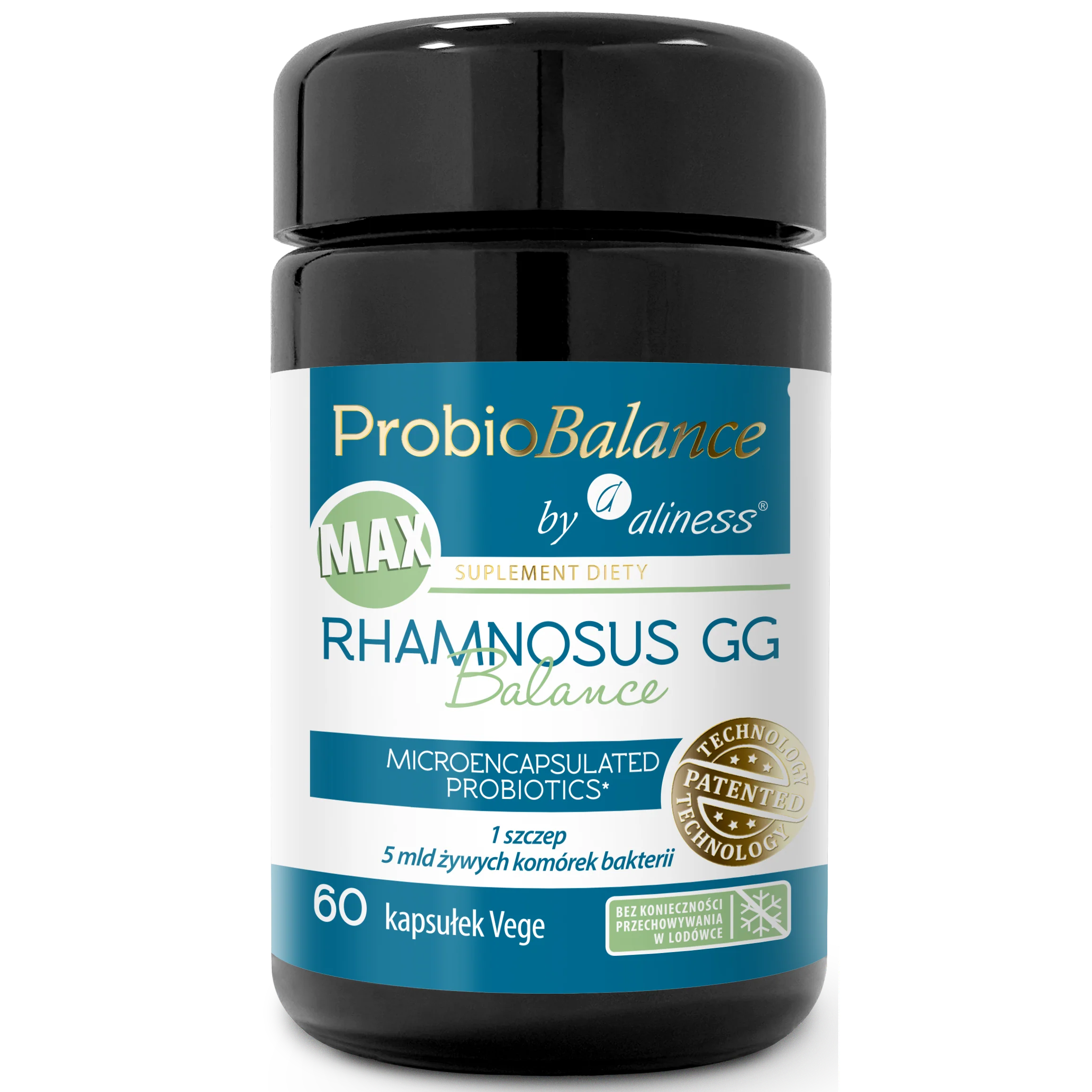 Food supplement ProbioBalance by AlinessĀ® Rhamnosus GG Balance contains 5 billion bacteria in each capsule. Each bacterium has been coated with a double lipid layer providing an effective barrier and allowing the bacteria to safely pass through the acidic environment of the stomach to reach the intestines intact, where it is to exhibit its biological activity.